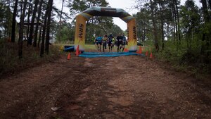 April 11, 2018 2018 Defenders of Liberty mud run: Getting down and dirty Participants of the 2018 Defenders of Liberty mud run race across the starting line at Barksdale Air Force Base, La., April 7, 2018. There were 481 runners that participated in the mud run this year. (U.S. Air Force photo by Senior Airman Stuart Bright)