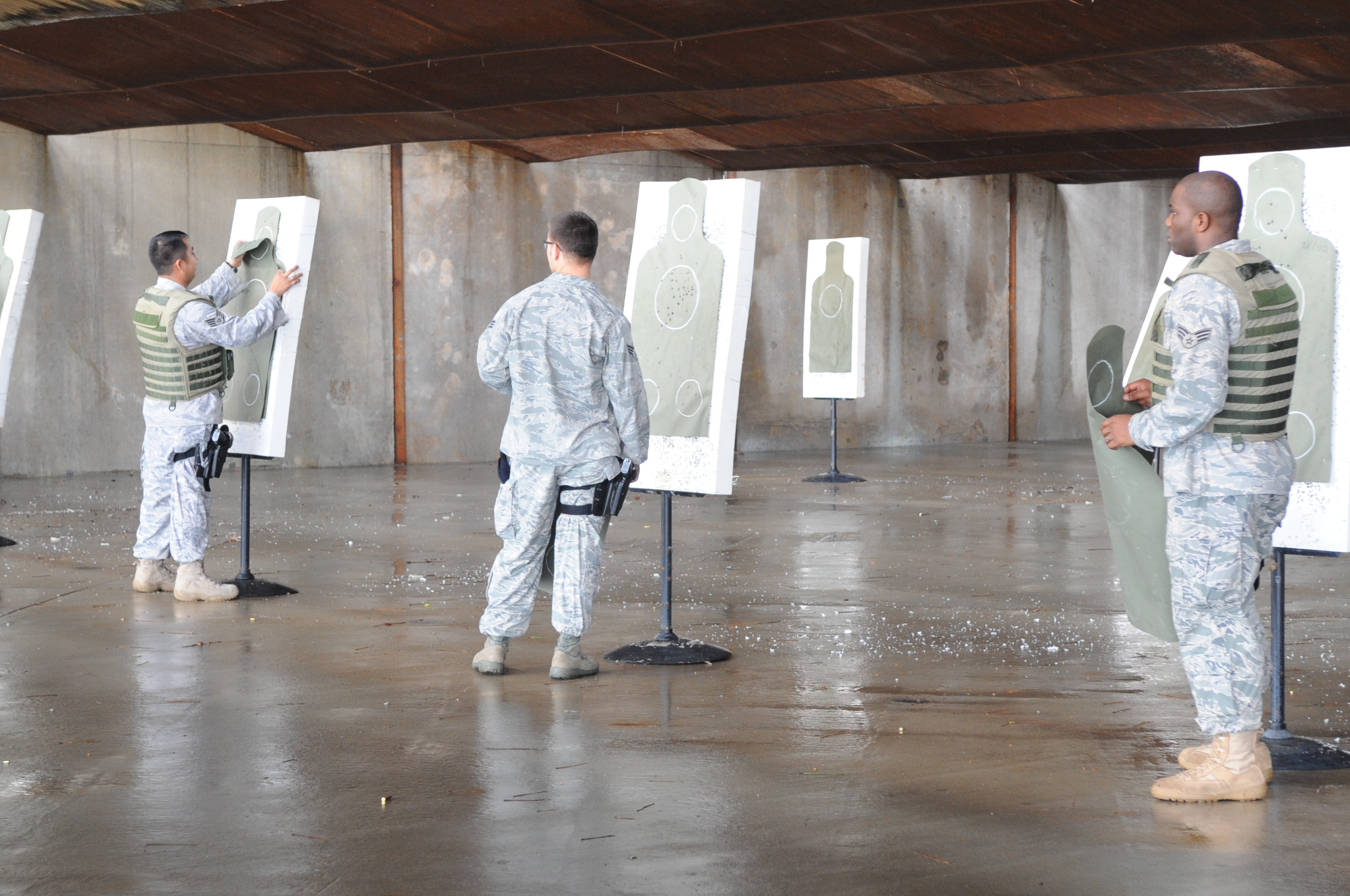 Airmen from Barksdale Air Force Base fill sandbags for a levee to hold back floodwaters in Bossier City, La. The Airmen, at the request of state and local officials, have been working nonstop since early Saturday morning to reinforce the levee containing Red Chute Bayou. More than 400 Airmen have assisted with filling and hauling sandbags in a massive effort under immediate response authority. (U.S. Air Force photo by Maj. Carie Parker)