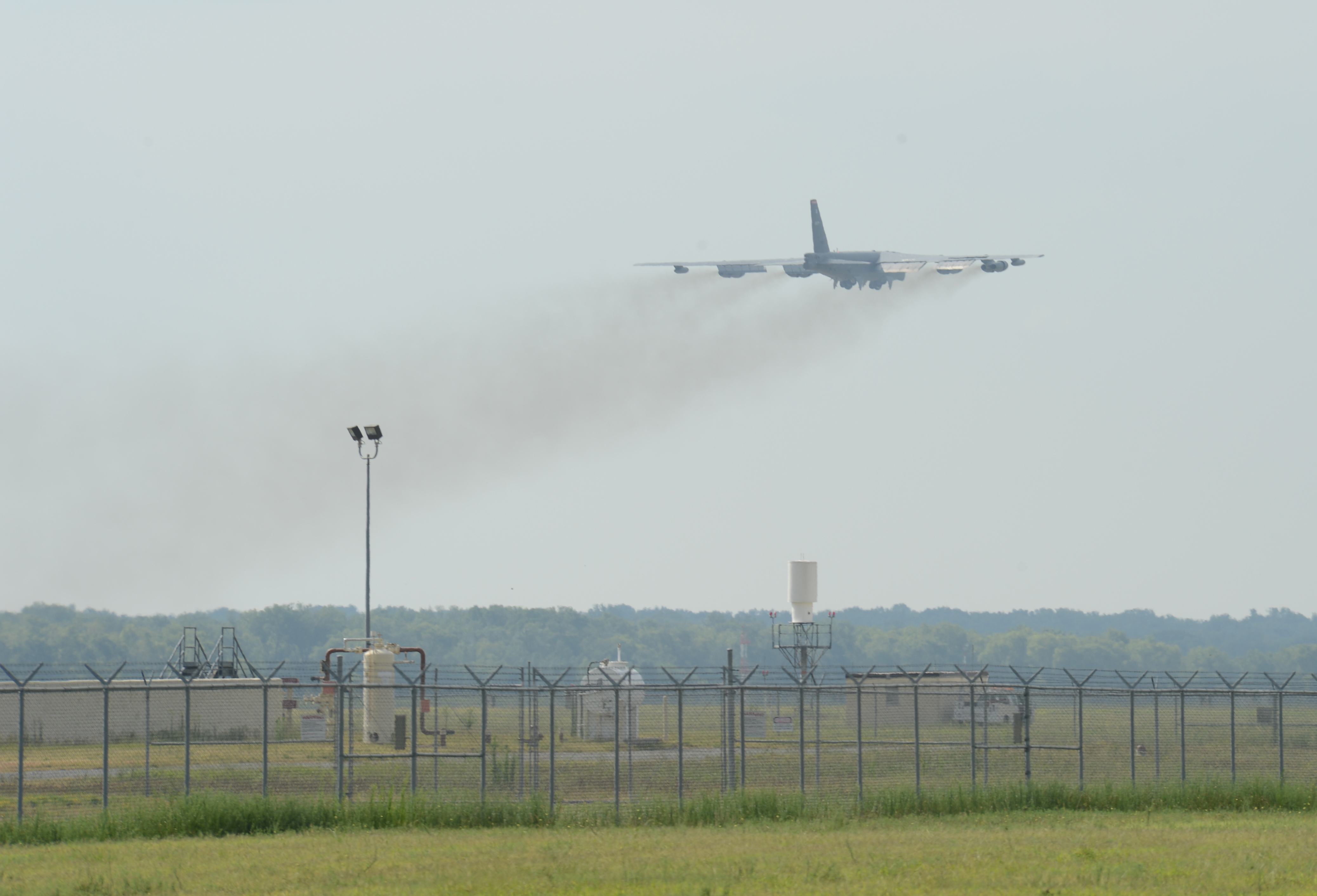 A B-52H Stratofortress takes off from Barksdale Air Force Base, La., July 16, 2013. The aircraft flew to Tinker Air Force Base, Okla., to receive a communication upgrade. The new system uses a high-speed digital data link that can transmit targeting, intelligence, surveillance and reconnaissance information. The Air Force has set aside funding for 30 B-52s to be upgraded in the near future. (U.S. Air Force photo/Senior Airman Micaiah Anthony)