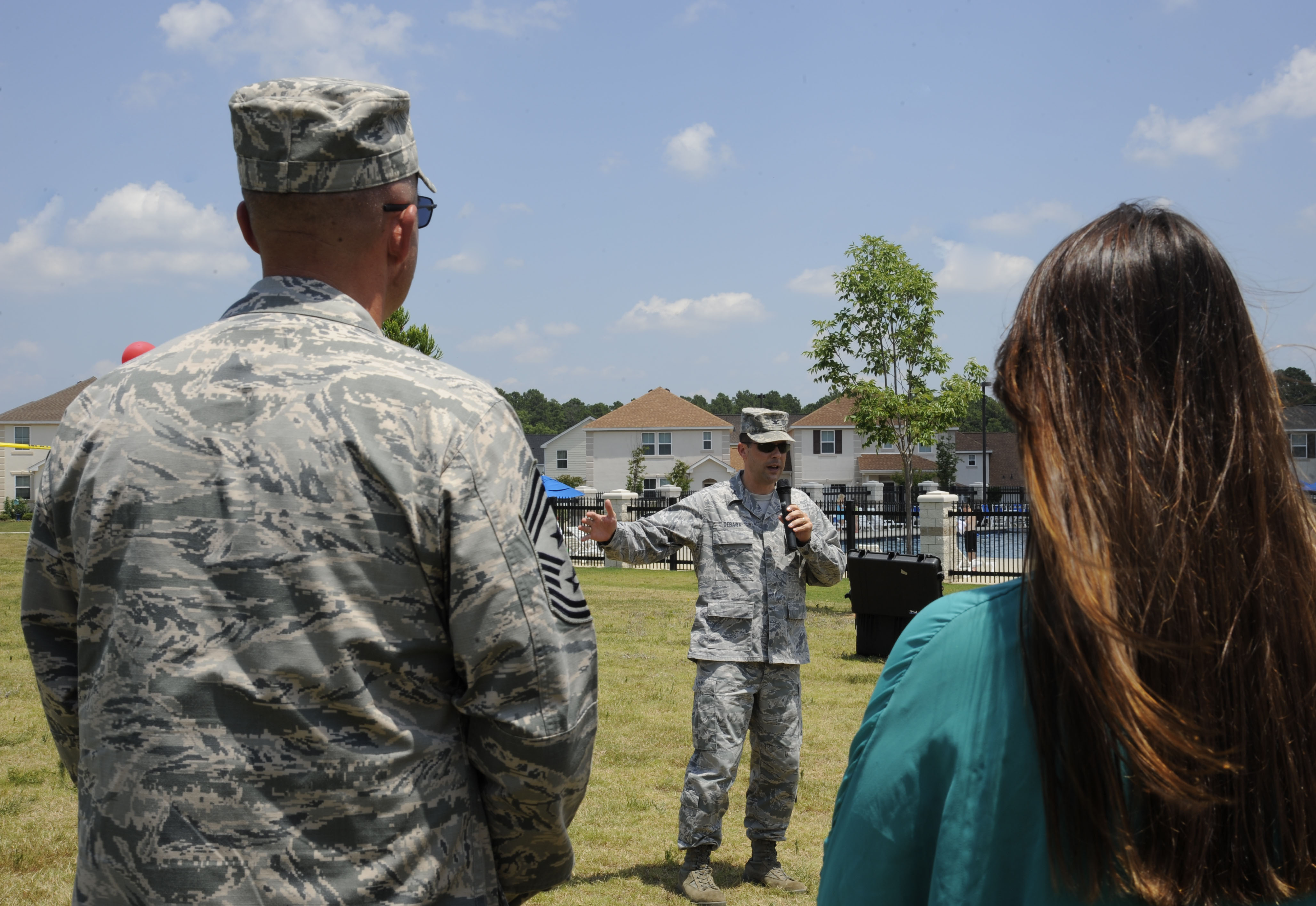 Col. Andrew Gebara, 2nd Bomb Wing commander, speaks during the groundbreaking ceremony of the East Reservation Community Center on Barksdale Air Force Base, La., July 12, 2013. The 3,150 square foot community center will include amenities such as a fitness area, activity room and kitchen. (U.S. Air Force photo/Airman 1st Class Andrew Moua)