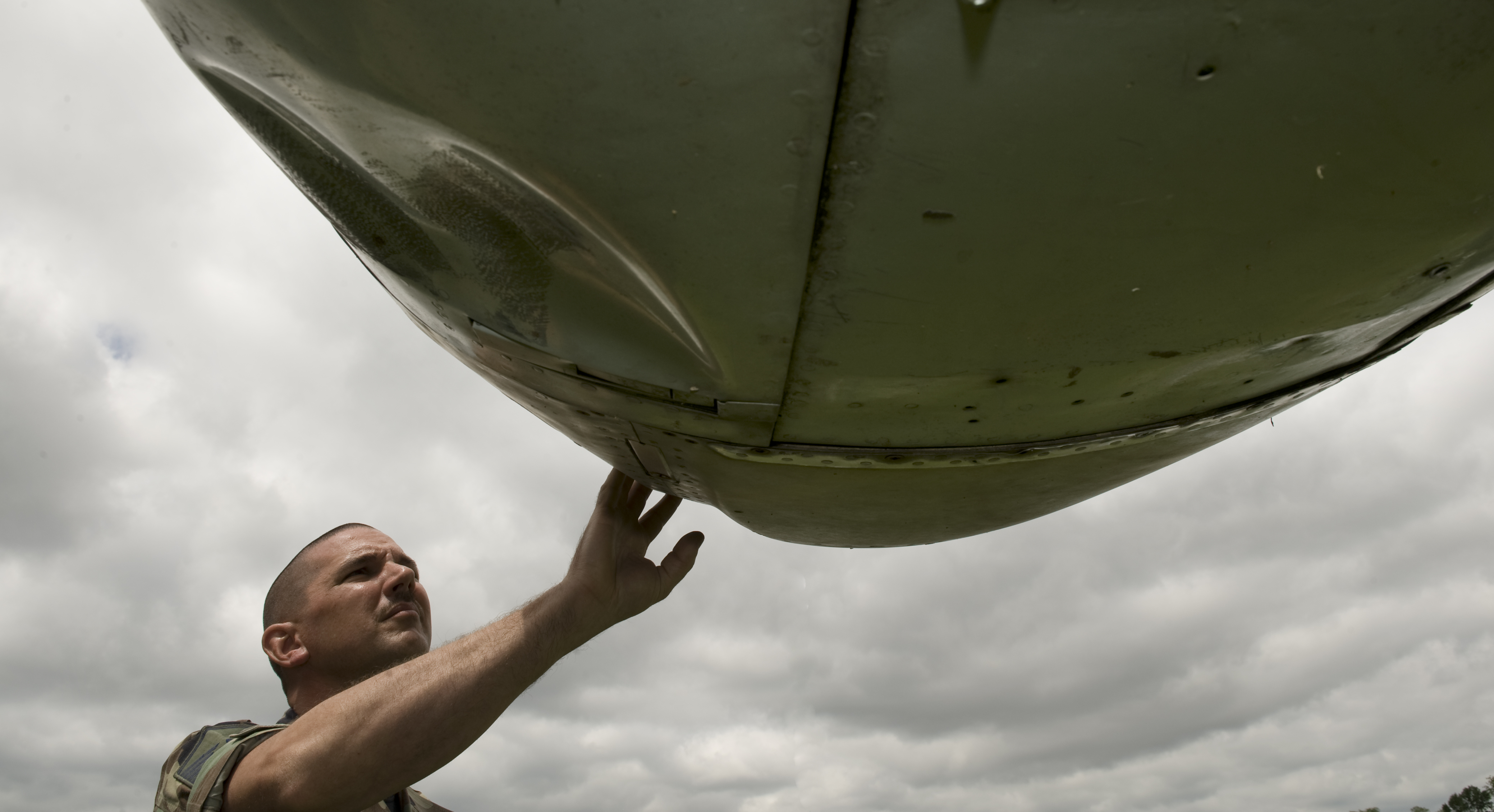 BARKSDALE AFB, La. -- Master Sgt. Keith Baron, a dedicated crew chief at 8th Air Force Museum, inspects the number four engine on a KC-135 Tanker during his morning walk around on May 8. Dedicated in 1979, the 8th Air Force Museum is one of only 12 Air Force Field Museums in the country. Home to 28 aircraft, 120 displays, and 300 linear feet of archival material. The museum is visited by 50,000 visitors annually. With a full-time staff of five (three active-duty personnel and two civilians), and devoted volunteers from Barksdale and the local community, the rich history of the 8th Air Force, the 2d Bomb Wing, and the prominent role of Air Force aviation is being preserved. (U.S. Air Force Photo/ Staff Sgt Samuel Rogers)