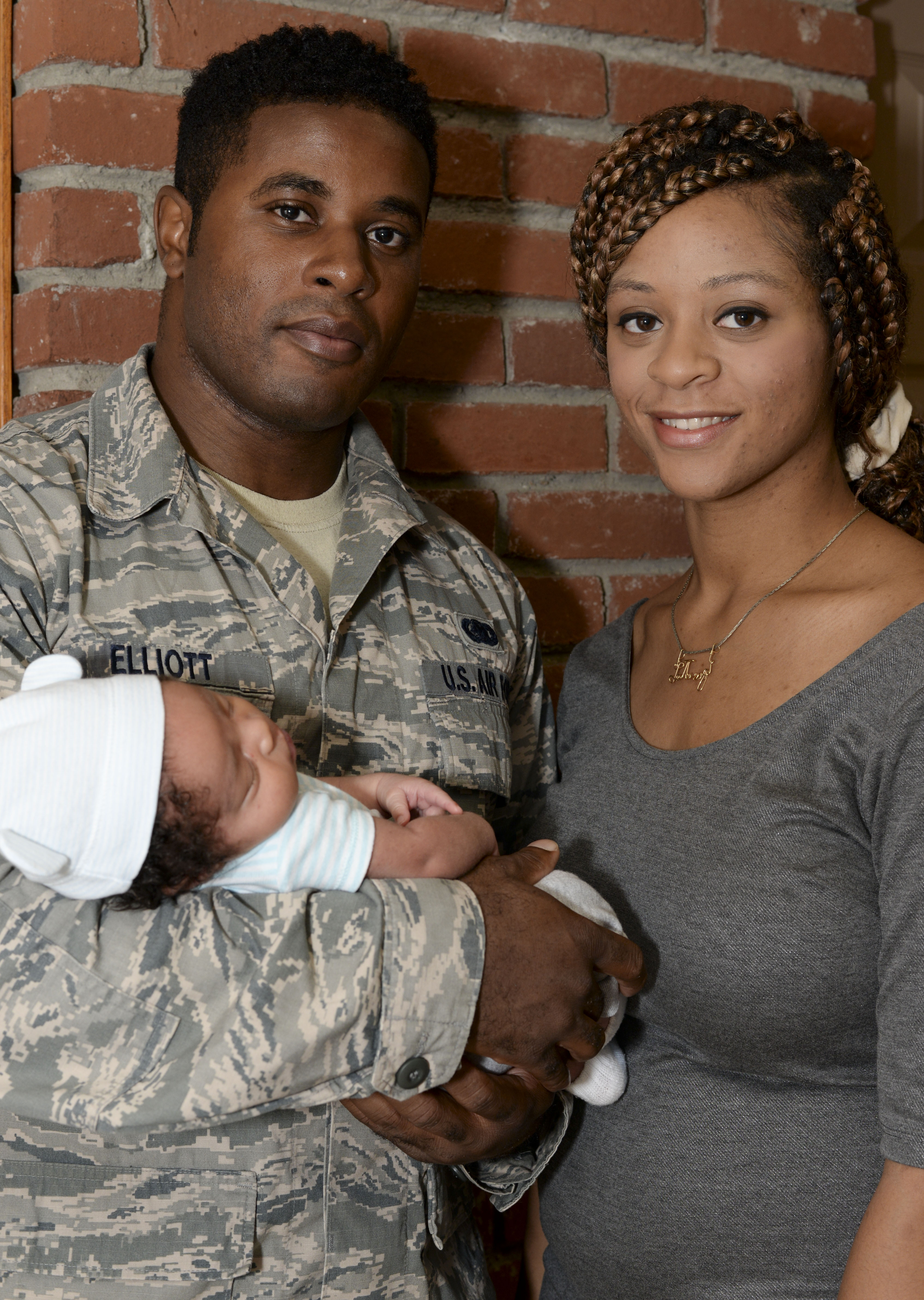 Staff Sgt. Darryal Elliott Jr., 2nd Logistics Readiness Squadron fuels mobile distribution NCO in charge, poses for a photo with his wife, Latonya, and son, Darryal Elliot III, at Barksdale Air Force Base, La., Aug. 26, 2015. Elliott rushed to the hospital immediately after he came home from a TDY. His son was born minutes after his arrival at the hospital. (U.S. Air Force Photo/Senior Airman Amanda Morris)